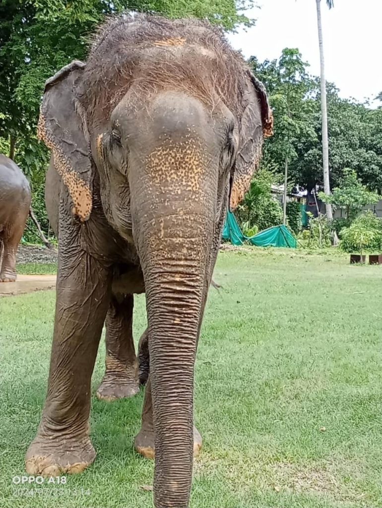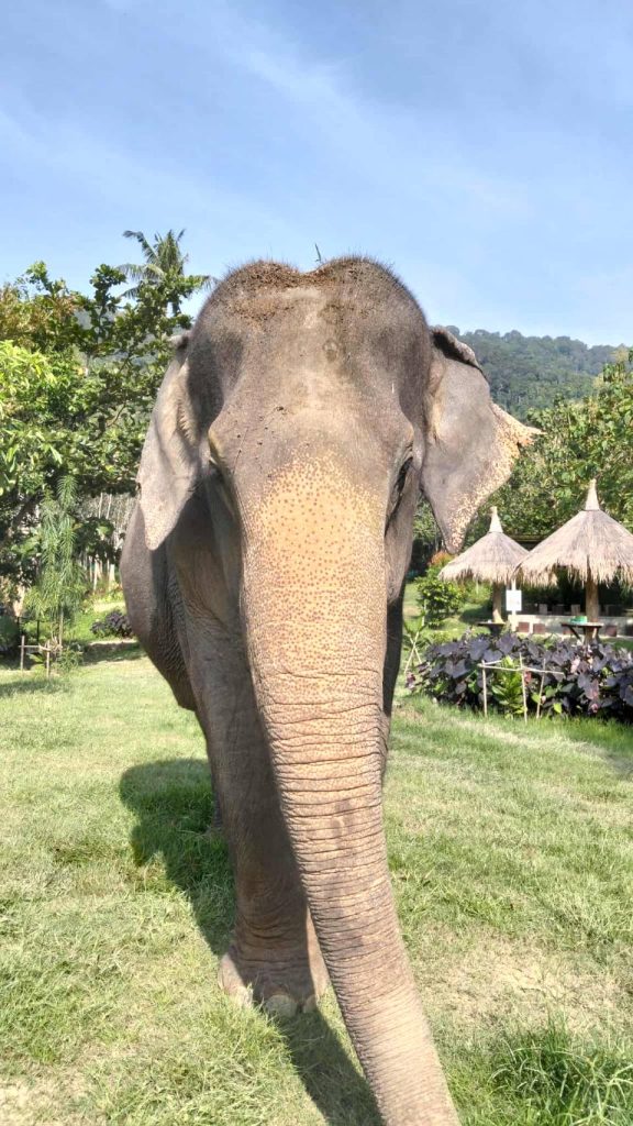 A female elephant from Northern Thailand, Pepsi once worked in the logging industry before finding peace and rest on Koh Lanta. She is easily recognized by her soft brown hair and warm, gentle eyes. Known for her kind and friendly nature, Pepsi welcomes every visitor with calmness and a gentle spirit.
